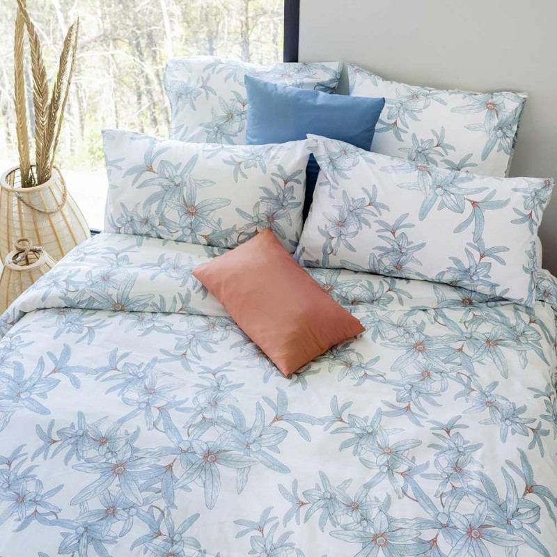 Funda nórdica en tono claro, oscuro y rosa con estampado floral en azul y rosa, de estilo fresco y delicado. Ideal para aportar luminosidad y un ambiente relajante al dormitorio.