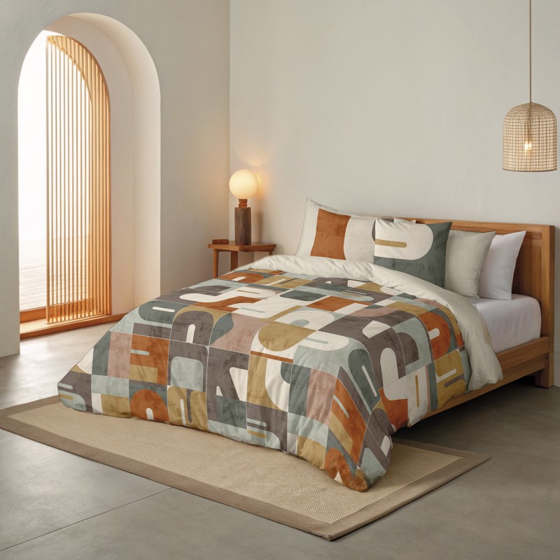La funda nórdica PUZZLE es una funda con un tejido suave y agradable, donde predominan estampados digitales que hacen dibujos con formas diferentes y totalmente perfectas. Es un modelo combinable, perfecto para cualquier ambiente o decoración.