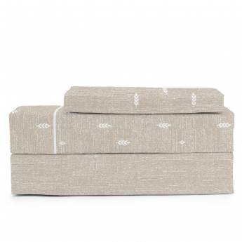 Este juego de sábanas está compuesto por un tejido 50% algodón y 50% poliéster con lo cual hace que prácticamente no se arrugue durante su lavado ni en su posterior uso. Son unas sábanas con tacto suave y agradable y donde se combina el diseño y el confort. Al tener una parte de algodón proporcionan un tacto exquisito a la vez que suavidad y confort para dormir.