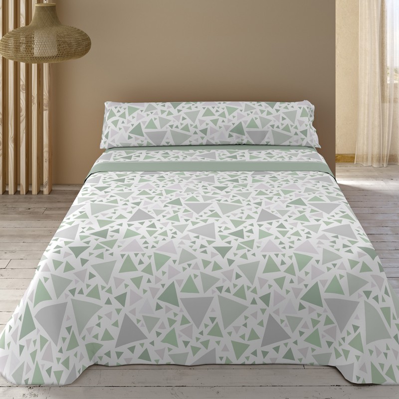 Juego de sábanas de coralina cálida y ultra suave, perfecto para mantener el confort durante los meses fríos. Presenta un diseño moderno de triángulos en tonos suaves que aporta un estilo actual y armónico al dormitorio. Ideal para quienes buscan una combinación de abrigo, suavidad y un toque decorativo contemporáneo.